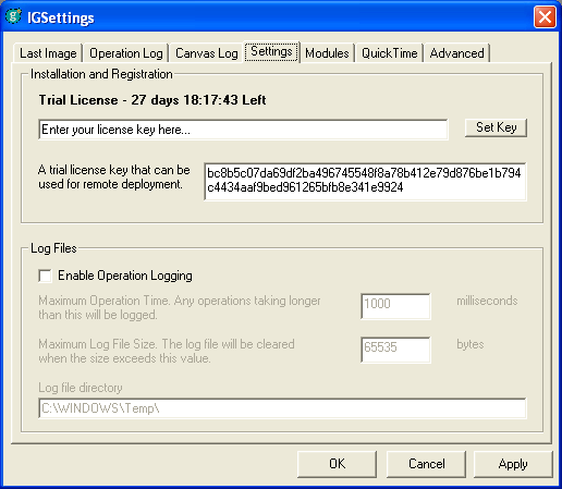 The Settings tab shows you the license details being used by