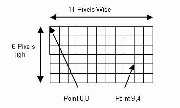 Often you need to use groups of points to specify what you want drawn and where. Say you want to draw a line. To describe where you want it to be you need to state a start Point and an end Point. Many shapes are described using sets of Points. For instance, a rectangle only needs two Points to describe it (just like the line). |